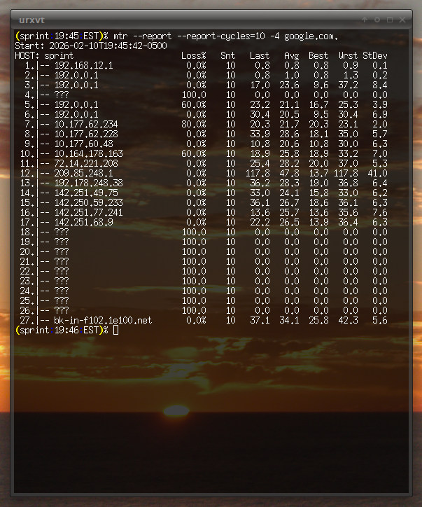 So, how does it perform? Pretty much the same as my cellphone on T-Mobile. Here’s a wget and MTR: